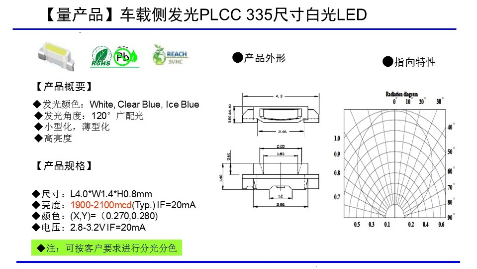 PLCC 335側(cè)發(fā)光封裝白光series