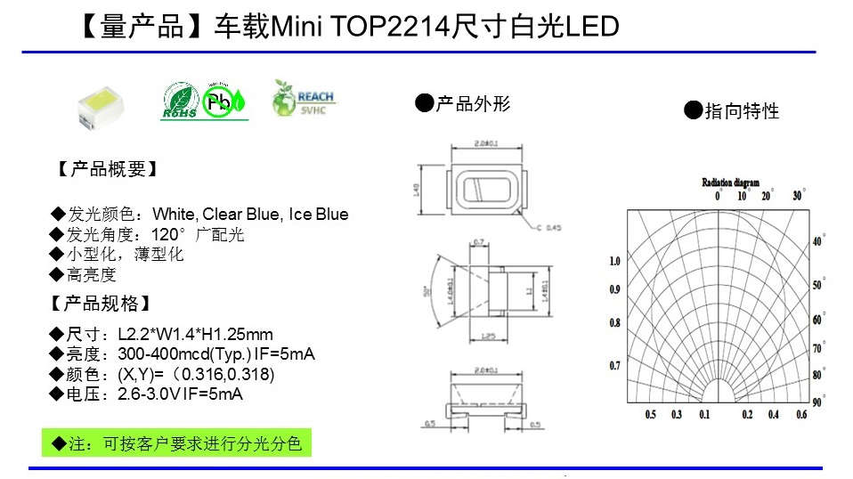 Mini-top 2214封裝白光series